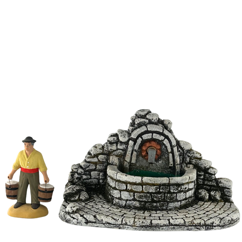D’une hauteur de 10 cm sur une largeur de 15 cm, la taille de cette petite fontaine à pompe lui permettra de trouver facilement sa place dans votre décor de crèche. Élément typique des paysages de Provence, elle pourra devenir un point d’eau essentiel pour vos santons une fois alimentée.