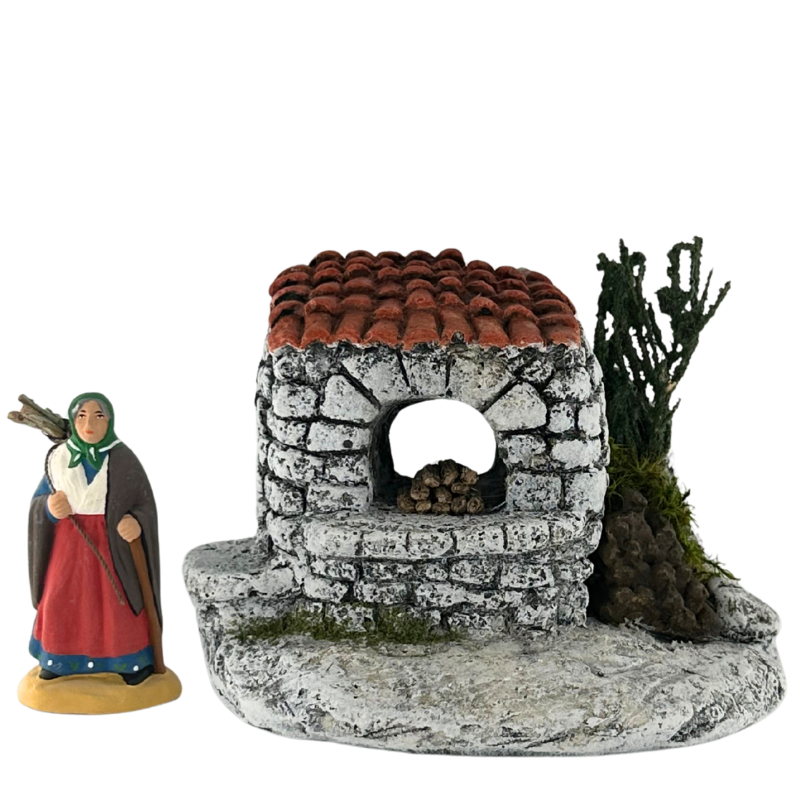 A la disposition de tous vos santons, ce petit four à pain et sa réserve de bûches trouveront leur place dans votre décor de crèche provençale. Fabriqué artisanalement et peint à la main, une fois branché sur secteur, son intérieur s’allume pour simuler la chaleur des flammes.