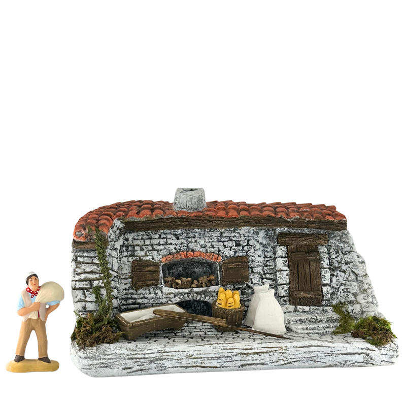 Cette petite maison et son four boulanger est remarquable de détails. D’une hauteur de 15 cm pour une largeur de 26 cm, cet élément de décor montre au spectateur un pétrin, des sacs de farine et des baguettes juste sorties d’un four qui, une fois branché sur secteur, peut s’éclairer pour plus de véracité dans votre crèche provençale.