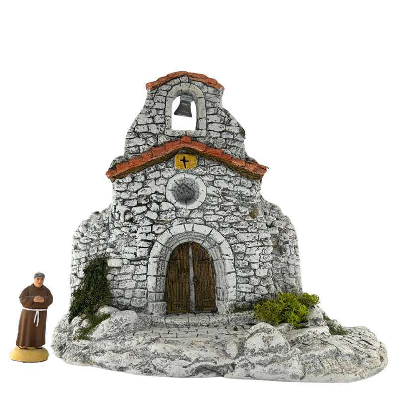 Cette grande façade d’église dont le grand portail est légèrement entrouvert a un caractère indéniablement rustique et campagnard. Elle vous permettra d’habiller une surface plane dans votre décor de crèche et de créer un point de convergence pour quelques santons.
