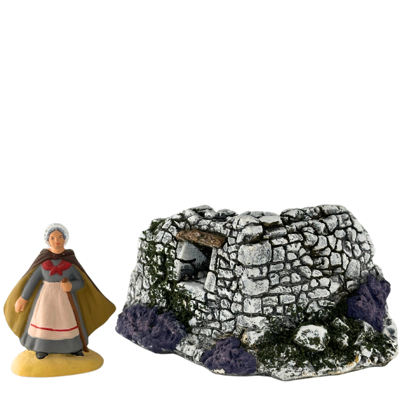 Pour que votre décor de crèche provençale soit subtilement rythmé, pensez à y disposer ça et là des petites éléments d’architecture comme ces murs de pierre. Ils vous aideront à tracer des axes pour vos santons, délimiteront des parcelles de champs ou des jardins de maisons. Celui ci est joliment décoré de bosquets de lavande.