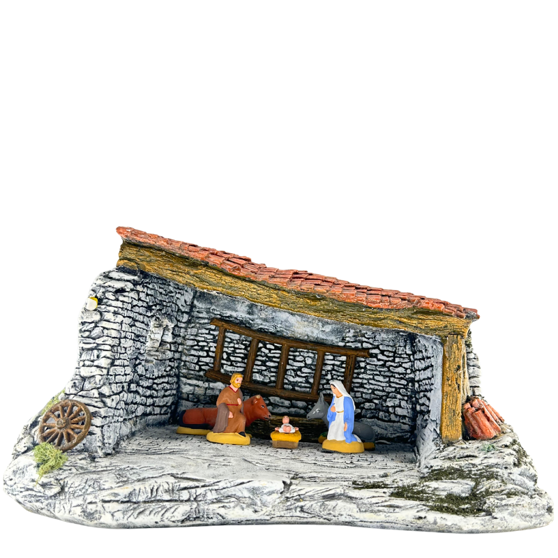 Cette grande étable pour le bétail mesure 21 cm de haut. Elle est ornée d’une auge qui pourra accueillir un peu de paille ou des végétaux de votre choix pour plus de véracité. Un peu en marge de la bourgade des santons, elle fera une transition idéale entre ville et campagne.