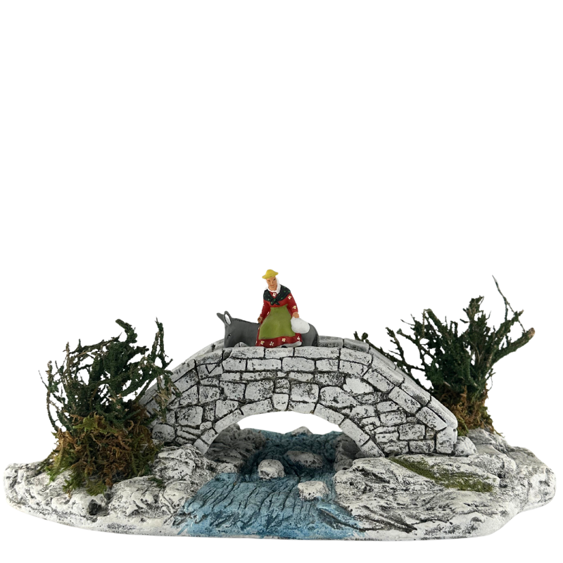 Ce solide pont de rivière traditionnel en pierre de taille permet à vos santons de traverser les cours d’eau en toute quiétude dans un décor d’arbustes et de roches. Fabriqué artisanalement et peint à la main, cet élément est un essentiel pour rythmer la topographie de votre crèche et créer des passages d’une espace à l’autre.
